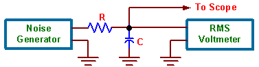 Set up the circuit shown in figure 5.1. Choose R to be some convenient value such as 1 kW. Use 5 or 6 different values of C chosen such that the bandwidth of the RC lowpass filter varies from a few hundred hertz to a few hundred kilohertz.