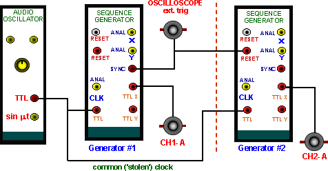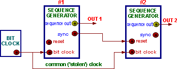 Two SEQUENCE GENERATOR modules may be coupled so that they deliver two identical, aligned, sequences.