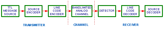 Preceding the line code encoder may be a source encoder with a matching decoder at the receiver. These are included in the block diagram of Figure 1, which is of a typical baseband digital transmission system. It shows the disposition of the LINE- CODE ENCODER and LINE-CODE DECODER. All bandlimiting is shown concentrated in the channel itself, but could be distributed between the transmitter , channel, and receiver.