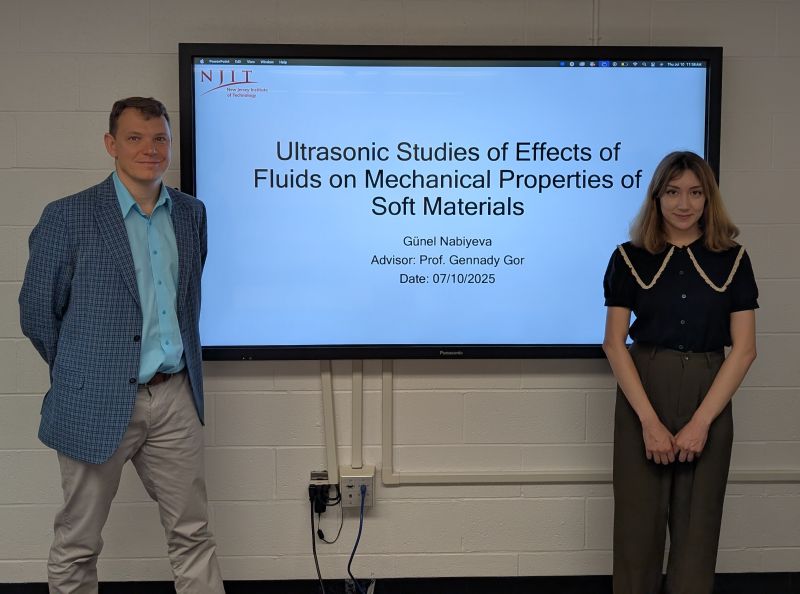 1/25/2025: Our group presented at two conferences organized at NJIT: Gennady and Gunel presented at the 19th Northeast Complex Fluids and Soft Matter Workshop. Egor and Geordy presented at the 43rd Regional Meeting on Kinetics and Dynamics.