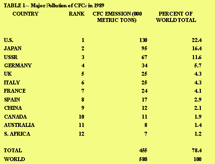these countries ratified it. Table 1 shows the major emitters of CFCs at that