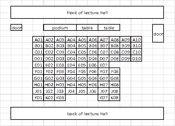 Lecture Hall III (Cullimore Hall, Room 106): row E, seat